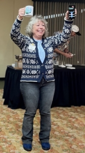President’s Choice Award: Co-winner Eric Hendricks (presented by Ann Morrow): As president, I am encouraged to select an award recipient that I, as president, found to be outstanding and of great assistance. Truly, many club members worked in the trenches and helped run the club on a day-by-day basis in 2024. I could not pick just one, but for my first President’s Choice selection (and these are in no particular order) I honed in on someone who is calm, respectful, reasonable, intelligent, and assertive. Our biggest event is Seattle to Portland. Eric Hendricks once again in 2024 served as the coordinator for the finish line, making sure the little details were taken care of: working with others, such as Lynn Blanchard, our volunteer coordinator, regarding staffing; making sure our youthful assistants, the high school heavy lifters, were utilized to the fullest; walking around during the event checking in with volunteers; representing our club to Cascade Bicycle Club as capable and competent in the face of 5,000+ riders heading our way. And while this award is specific to 2024, I have to tell you that although Eric resigned from this position so he could actually ride STP in 2025, he continues to be involved: mentoring our new finish line coordinator, Richard Rosenberg; attending planning meetings to share his insights; and volunteering to inventory road signage to make certain we have what we need and not a lot of duplications – a job probably only he and a very few can perform with any competency. As president, such a volunteer provides a huge sense of relief – no micromanaging needed. He’s got this.